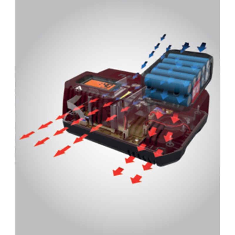 Η συνεχής ηλεκτρονική παρακολούθηση του κύκλου φόρτισης και η βέλτιστη ροή αέρα σε μπαταρία και φορτιστή, μειώνει σημαντικά το χρόνο φόρτισης της μπαταρίας και αυξάνει τη διάρκεια ζωής της